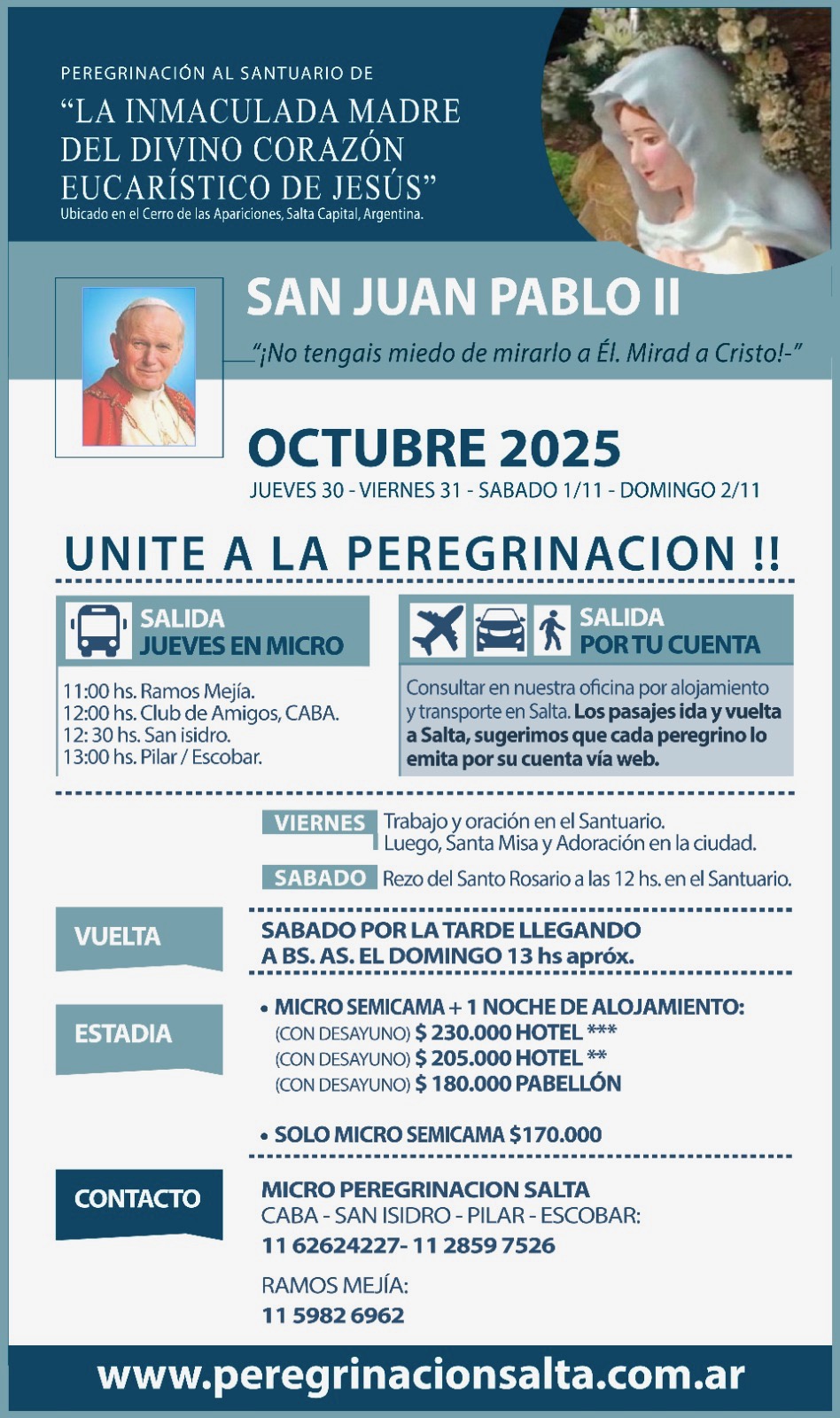 01 de Noviembre 2025Peregrinacion San Juan Pablo IIMas info